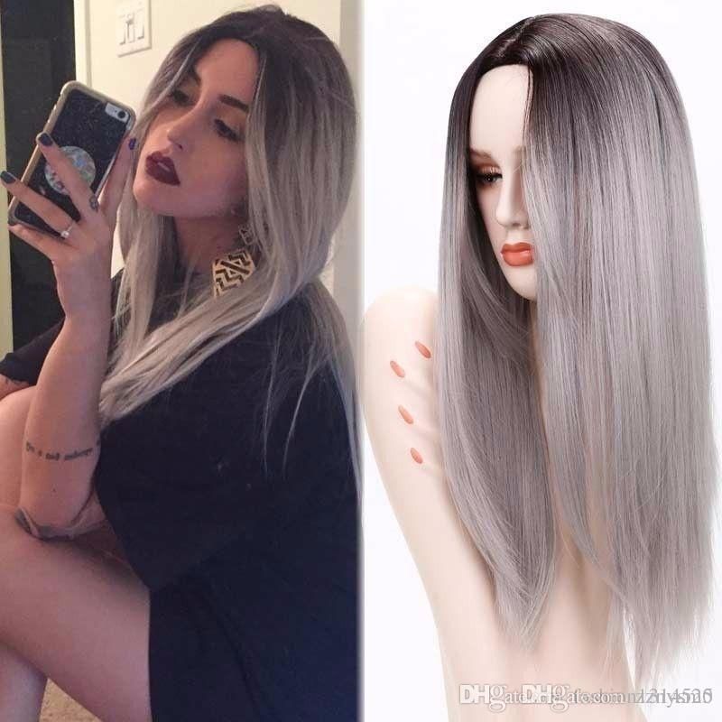 Us Womens Straight Wig Black Mixed Wine Red Blonde Rainbow Emo