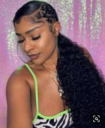 Kinky Straight Wig Braiding Hair Human Hair Ponytail Full Lace