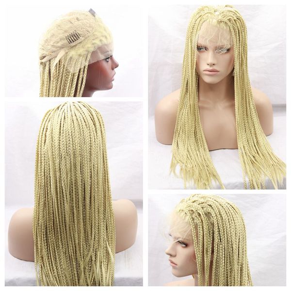 New Stylish Synthetic Blonde Color Braided Lace Front Wig Box