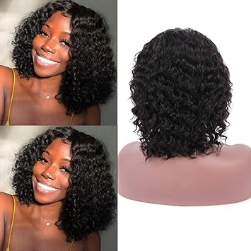 Amazon Com Deep Wave Lace Front Human Hair Wigs 13x4 Short Bob